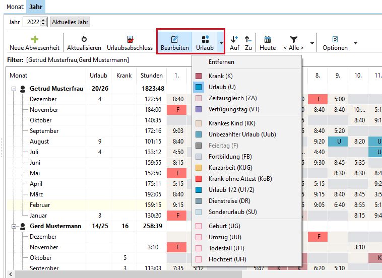 Abwesenheiten bearbeiten