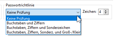 Legen Sie hier fest, welche Zeichen mindestens im Passwort Ihrer Mitarbeiter beinhaltet sein müssen.