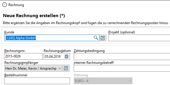 << Click to Display Table of Contents >> Navigation: Xpert-Timer Handbuch > Faktura > Rechnungen > Rechnung anlegen / bearbeiten |