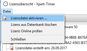 Zum Aktivieren des Xpert-Timer benötigen Sie eine Lizenzdatei. Um diese einzuspielen haben Sie verschiedene Möglichkeiten: