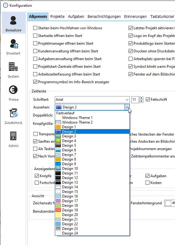 Wir empfehlen für jeden Mitarbeiter eine eigene Farbe der Zeitleiste einzurichten, damit gleich erkennbar ist, welcher Mitarbeiter die Software verwenden. Die Einstellung finden Sie in der Konfiguration -> Benutzer - > Allgemein.