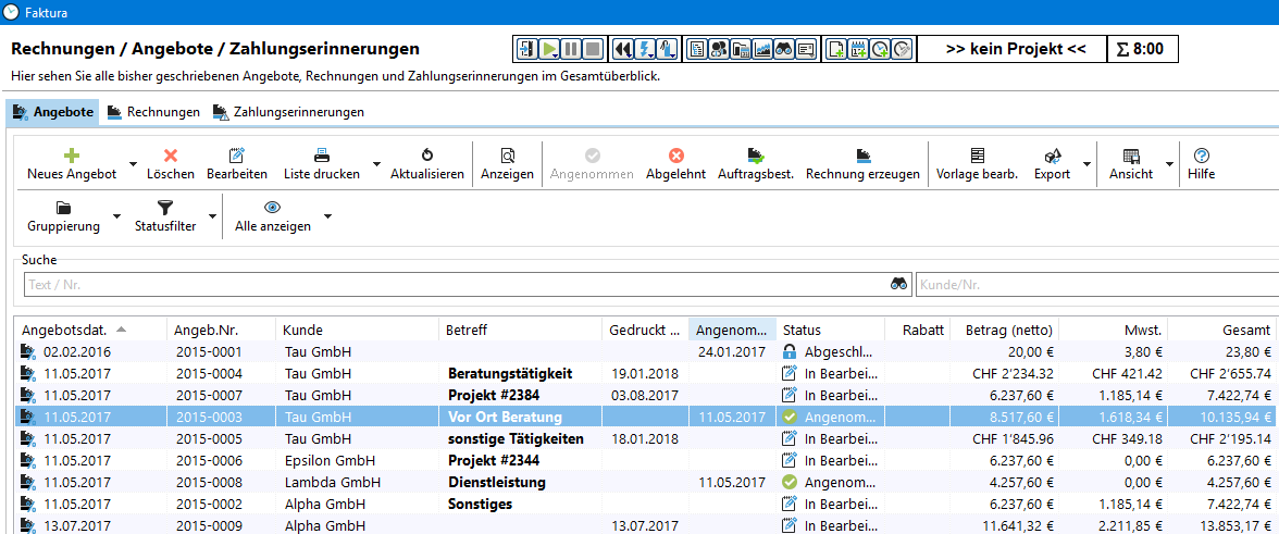 << Click to Display Table of Contents >> Navigation: Xpert-Timer Handbuch > Faktura > Angebote |