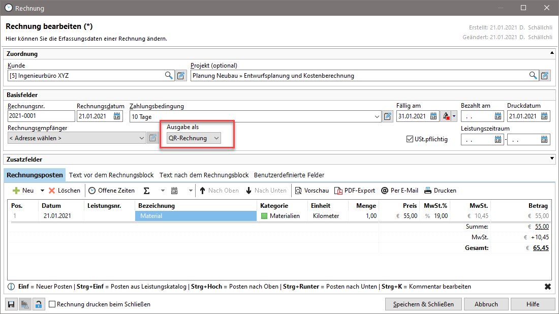 << Click to Display Table of Contents >> Navigation: Xpert-Timer Handbuch > Faktura > Rechnungen > Schweizer QR-Rechnung erzeugen |