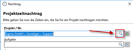 In manchen Dialogen haben Sie die Möglichkeit über den Knopf "Suchen" ein Projekt auszuwählen.