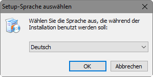 Wählen Sie Ihre Sprache und klicken Sie auf "OK". Die Spracheinstellung an dieser Stelle bezieht sich auf die Lizenzvereinbarungen: