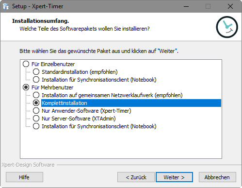 Für Mehrbenutzer / Komplettinstallation: (Xpert-Timer, XTAdmin, Access-Datenbank)