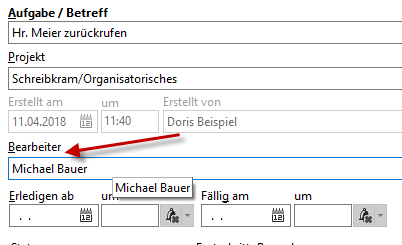 Mit dem Xpert-Timer können Sie im Team Aufgaben an andere Mitarbeiter vergeben. Geben Sie dazu einfach den entsprechenden Mitarbeiternamen als Bearbeiter der Aufgabe an.