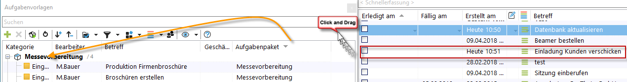 Am einfachsten ziehen Sie eine bestehende Aufgabe in Ihre Aufgabenvorlagen oder auf ein bereits bestehendes Aufgabenpaket.